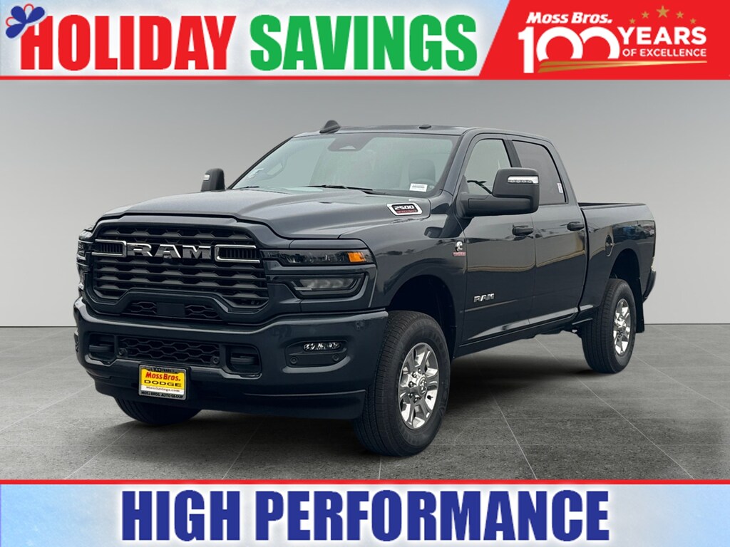 ENGINE: 6.7L I6 CUMMINS HO TURBO DIESEL Selective Catalytic Reduction (Urea), Dual 730 Amp Maintenance Free Batteries, Cummins Turbo Diesel Badge, Heavy Duty Engine Cooling, Diesel Exhaust Brake, Supplemental Heater, 3.42 Axle Ratio, Front Bumper Sight Shields, Capless Fuel Fill w/o Discriminator, GVWR: 11,040 lbs, BIG HORN LEVEL 1 PLUS EQUIPMENT GROUP Emergency Vehicle Alert System (EVAS), 12 Touchscreen Display, Glove Box Lamp, Auto Power-Folding Mirrors, Footwell Courtesy Lamp, Anti-Spin Differential Rear Axle, MOPAR Deployable Bed Step, Alexa Built-In, Forward & Reverse Utility Lights, Locking Lower Glove Box, Remote Start System, 9 Alpine Speakers w/Subwoofer, Disassociated Touchscreen Display, Dual Glove Boxes, 2nd Row In Floor Storage Bins, Rear View Auto Dim Mirror, Rear Dome w/On/Off Switch Lamp, LED Bed Lighting, GPS Navigation, SiriusXM w/360L, Connected Travel & Traffic Services, Foam Bottle Insert (Door Trim Panel), Big Horn IP Badge, Off-Road Info Pages, Trailer Tow Pages, HD Radio, Radio: Uconnect 5 Nav w/12.0 Display, Power Heated Folding Telescopic Mirrors, Steering Wheel Mounted, BLACK, PREMIUM CLOTH BUCKET SEATS Bucket Seats, Power Adjust 8-Way Driver Seat, Folding Flat Load Floor Storage, Rear 60/40 Folding Seat, Front Seat Back Map Pockets, Power 2-Way Driver Lumbar Adjust, Full Length Upgraded Floor Console, MOPAR FRONT & REAR RUBBER FLOOR MATS, TRANSMISSION: 8-SPEED TORQUEFLITE HD AUTOMATIC.
