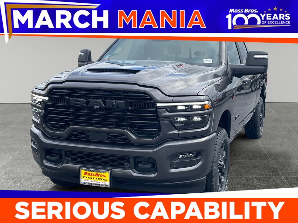 ENGINE: 6.7L I6 CUMMINS HO TURBO DIESEL Selective Catalytic Reduction (Urea), Dual 730 Amp Maintenance Free Batteries, Cummins Turbo Diesel Badge, Heavy Duty Engine Cooling, Diesel Exhaust Brake, Supplemental Heater, 3.42 Axle Ratio, Front Bumper Sight Shields, Capless Fuel Fill w/o Discriminator, GVWR: 11,040 lbs, LARAMIE LEVEL 2 PLUS EQUIPMENT GROUP Power Adjustable Pedals w/Memory, Power Deployable Running Boards, Anti-Spin Differential Rear Axle, Drowsy Driver Detection, MOPAR Deployable Bed Step, Active Lane Management System, Remote Tailgate Release, 17 Speaker harman/kardon® Premium Sound, 2nd Row In Floor Storage Bins, CTR Stop Lamp w/Cargo View Camera, Rain Sensitive Windshield Wipers, LED Bed Lighting, Traffic Sign Recognition, Adaptive Steering System, Auto Dim Exterior Mirror, Foam Bottle Insert (Door Trim Panel), 14.4 Touchscreen Display, Power Heated Fold Telescopic Mirrors w/Memory, Radio: Uconnect 5 Nav w/14.4 Display, MOPAR Spray In Bedliner, Auto High Beam Headlamp Control, Exterior Mirrors w/Memory, Auto Dim Exterior Passenger Mirror, Auto Adjust In Reverse Exterior Mirrors, NIGHT EDITION Tires: LT285/60R20E OWL On/Off Road, Black Exterior Truck Badging, Wheels: 20 x 8.0 Black Painted Aluminum, Gloss Black Grille Billets/Accents, Body Color Grille-Surround, Sport Performance Hood, Black Exterior Mirrors, TOWING TECHNOLOGY GROUP Surround View Camera System, Trailer Tire Pressure Monitoring System, Trailer Reverse Guidance, TRANSMISSION: 8-SPEED TORQUEFLITE HD AUTOMATIC, BLACK, LEATHER TRIMMED BUCKET SEATS Bucket Seats, Dual Wireless Charging Pad, Ventilated Front Seats, Radio/Driver Seat/Mirrors/Pedals Memory, Full Length Upgraded Floor Console.