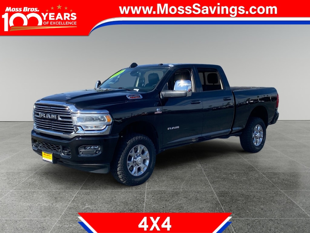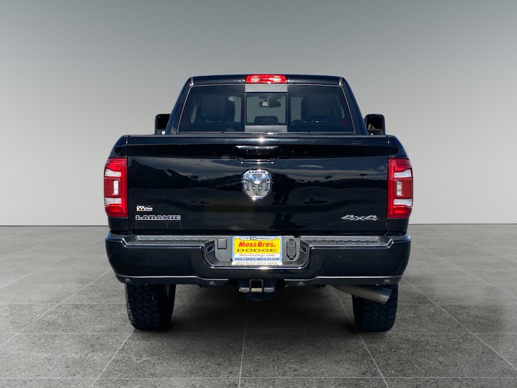 ENGINE: 6.7L I6 CUMMINS TURBO DIESEL Selective Catalytic Reduction (Urea), Dual 730 Amp Maintenance Free Batteries, Cummins Turbo Diesel Badge, Heavy Duty Engine Cooling, Supplemental Heater, 220 Amp Alternator, Tow Hooks, Diesel Exhaust Brake, Front Bumper Sight Shields, Capless Fuel Fill w/o Discriminator, TRANSMISSION: 6-SPEED AUTOMATIC (68RFE), LARAMIE LEVEL 1 EQUIPMENT GROUP Blind Spot & Cross Path Detection, LED Tail Lamps, Power Adjustable Pedals w/Memory, For Details, Visit DriveUconnect.com, For More Info, Call 800-643-2112, 12 Touchscreen Display, Auto Power-Folding Mirrors, Front LED Fog Lamps, Mirror Running Lights, Alexa Built-In, Power Adjustable Convex Aux Mirrors, Forward & Reverse Utility Lights, Disassociated Touchscreen Display, Remote Tailgate Release, Center Hub, 2nd Row In Floor Storage Bins, Rear Window Defroster, Rain Sensitive Windshield Wipers, Rear Power Sliding Window, GPS Navigation, Auto Dim Exterior Mirror, SiriusXM w/360L, Connected Travel & Traffic Services, LED Reflector Headlamps, Foam Bottle Insert (Door Trim Panel), Off-Road Information Pages, Selectable Tire Fill Alert, Trailer Tow Pages, HD.